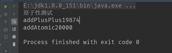 代码结果:由于volatile不能保证原子性,出现了线程重复写的问题,最终结果比20000小。而AtomicInteger可以保证原子性。