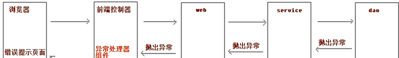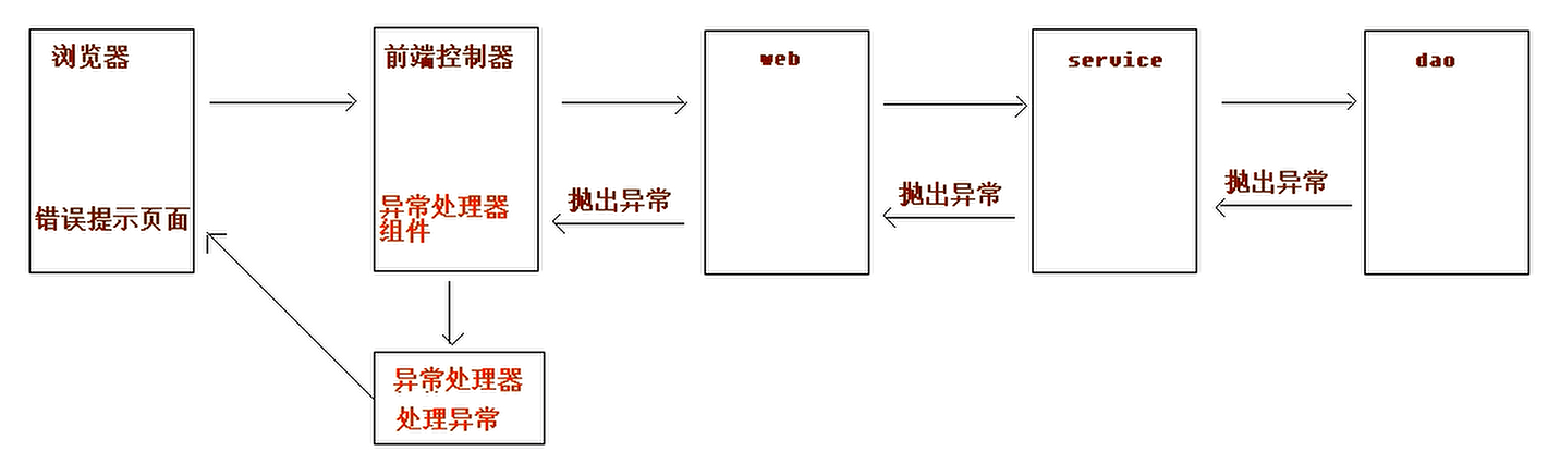 在前面编写的控制层(或其他层)类方法中,可能会出现种种的异常,这些异常会逐层向上抛出,然后在页面中显示错误信息。