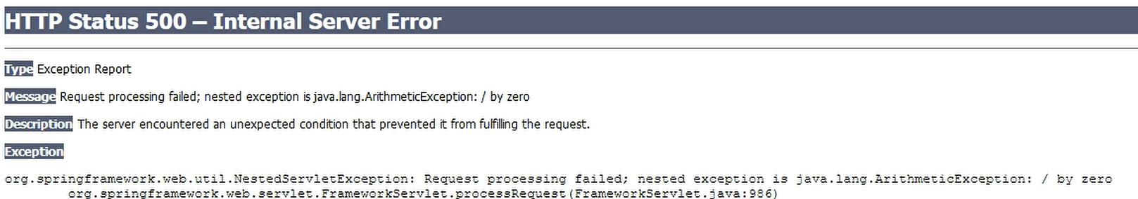 如果我们希望在方法中出现异常后显示的是另一种特定的页面,而不是干巴巴的显示错误页面的不友好页面,我们可以使用异常处理器来处理异常。