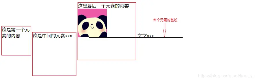 1)当 inline-block 元素中有文字内容的时候,inline-block元素的基线是最后一行文字内容(元素)的基线,无论文字内容在什么子对象容器内、在什么位置都没有关系。
