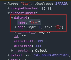 小程序传参,并不是直接传递给事件的,都是通过挂载到自定义属性上,进行传参 小程序自定义属性上,可以传递基础类型,也可以传递对象