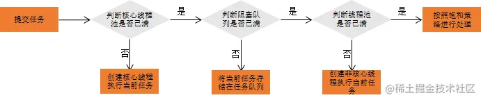 // 1.线程池处于RUNNING状态(只有处于此状态,才能接受新的任务)