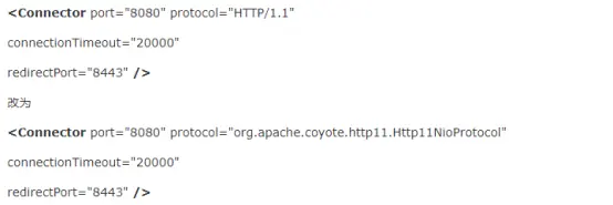 进入到tomcat的server.xml找到connector。更改其中的protocol属性即可。