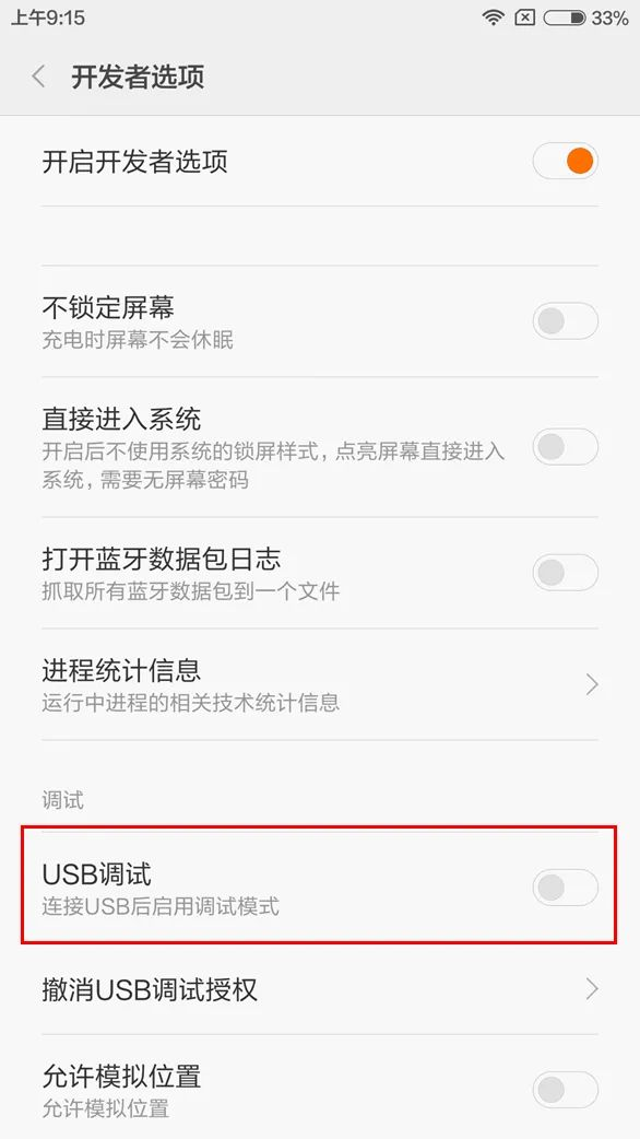 第一步:打开手机的USB调试
