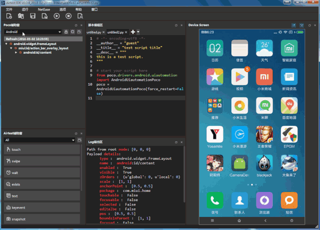 Airtest IDE的界面如下图