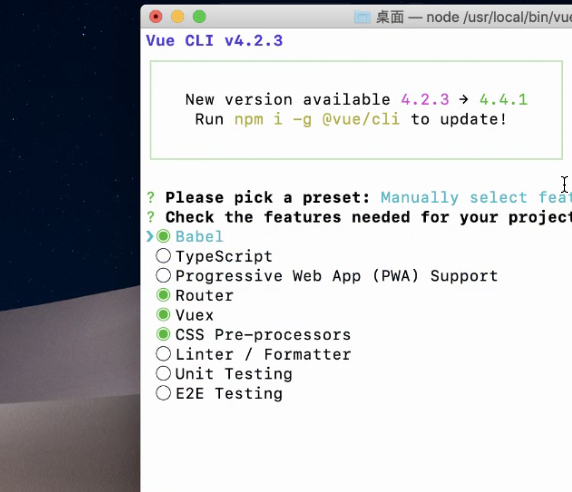 - 在全局先下载vue脚手架4.0的版本,使用命令:npm install -g @vue/cli