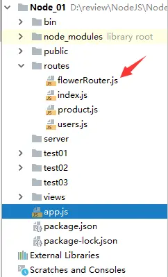 找到目录结构routes,新建flowerRouter.js文件。目录结构如下: