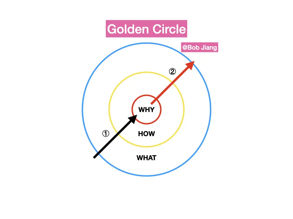 而如果我们从为什么(why)开始讲(如上图红色箭头)。则会完全不一样。比如为什么会去做这个事情,我的动机是什么?然后再讲怎么做的,得到了什么结果,这样的故事会更加的强大,更加的具有感染力。(这里面也离不开what,具体的数字和结果)