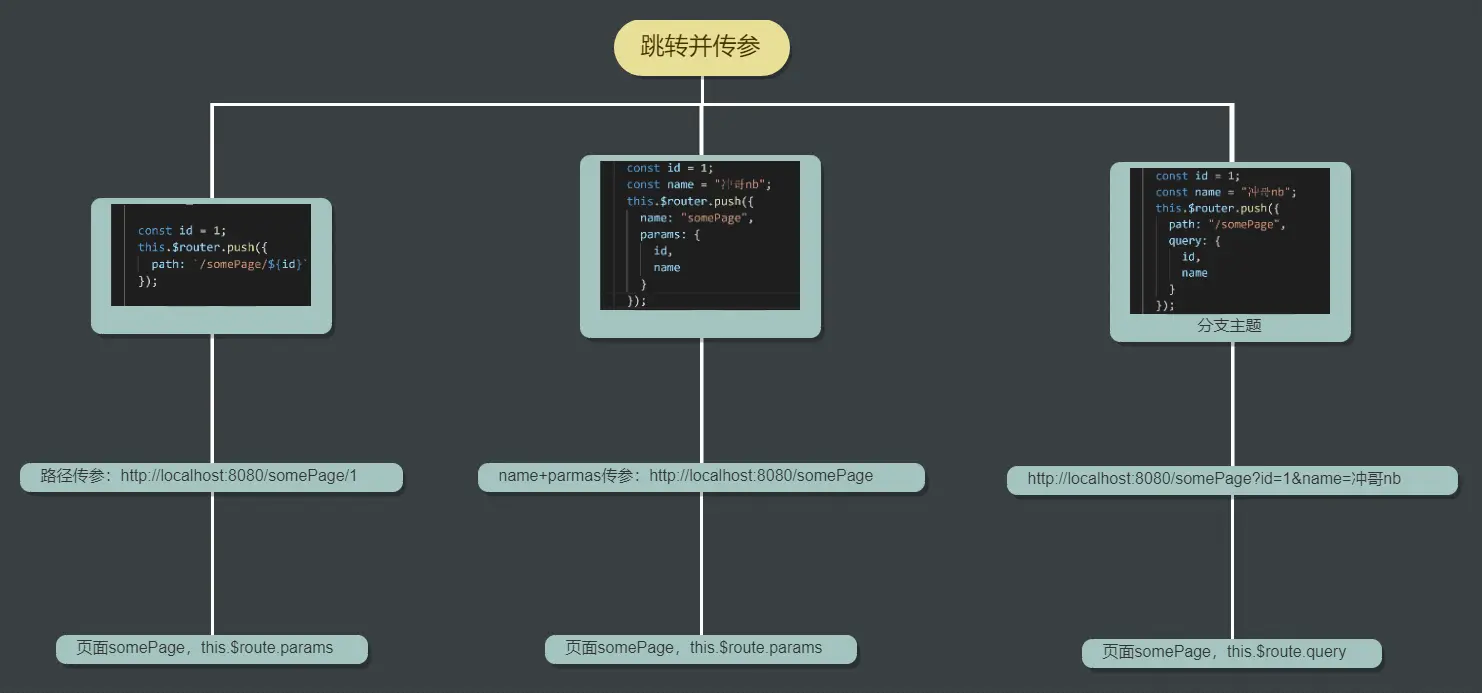 - name+parmas:可传递多个参数,参数不会显示在url中,页面刷新参数不可获取。