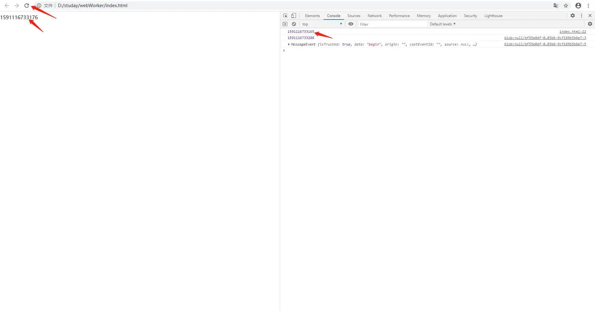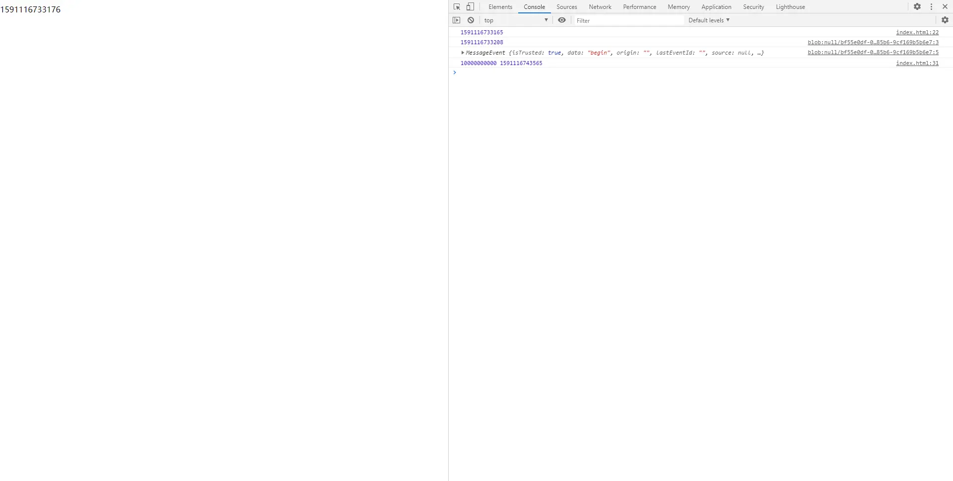 可以看到,页面加载并没有被阻塞,主线程的代码正常执行,元素正常生成并插入,计算的过程好似并不存在。worker线程执行完毕后,将计算结果推给主线程,降低了主线程的运行压力,并且提升了用户体验。