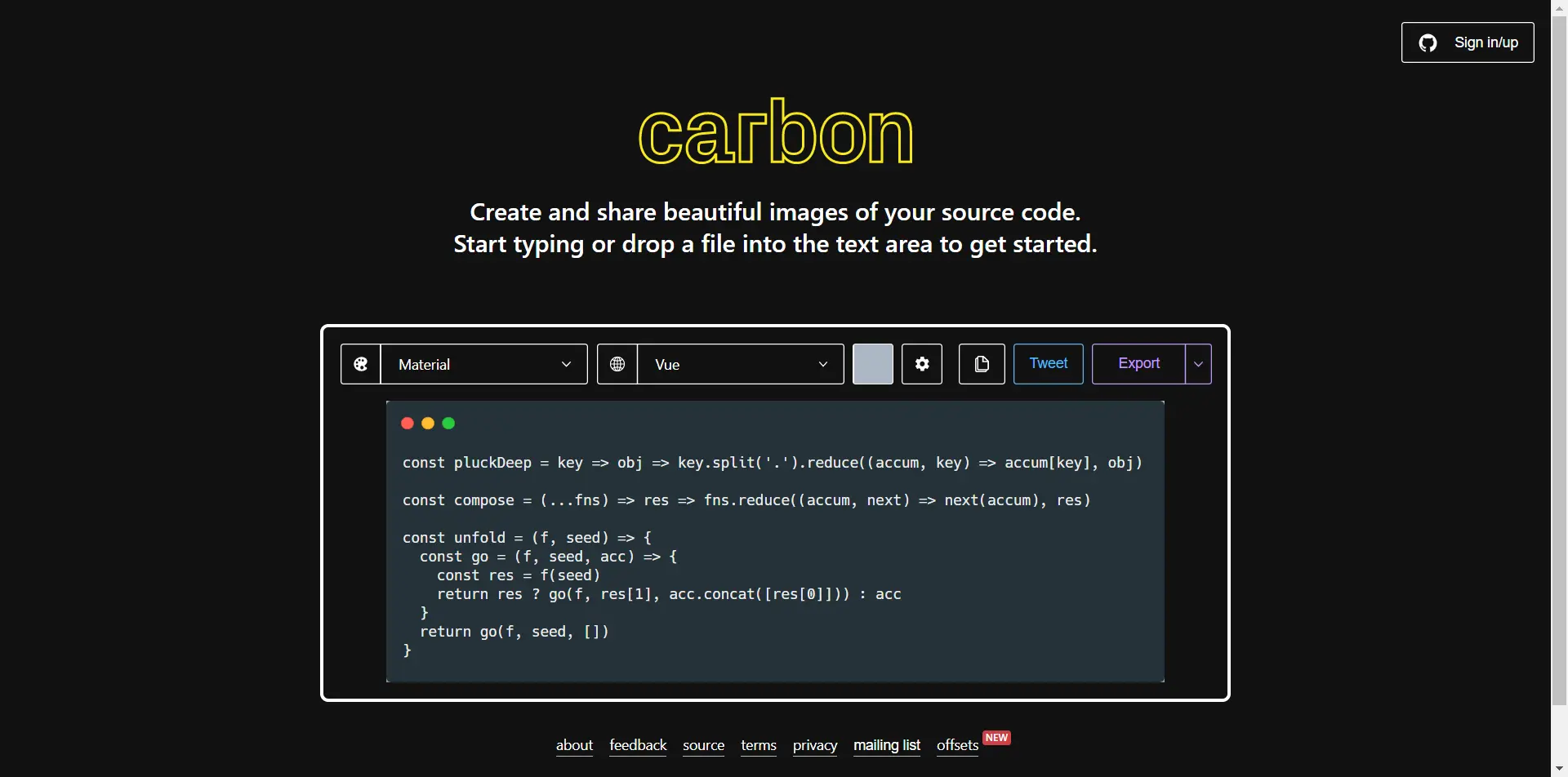 Mac风格的代码图片生成工具。能够将代码生成一个好看的图片。可以供你在交流时作为分享内容,提高逼格。