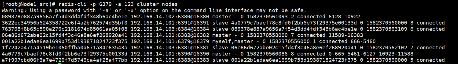 redis-cli -p 6379 -a 123 cluster nodes