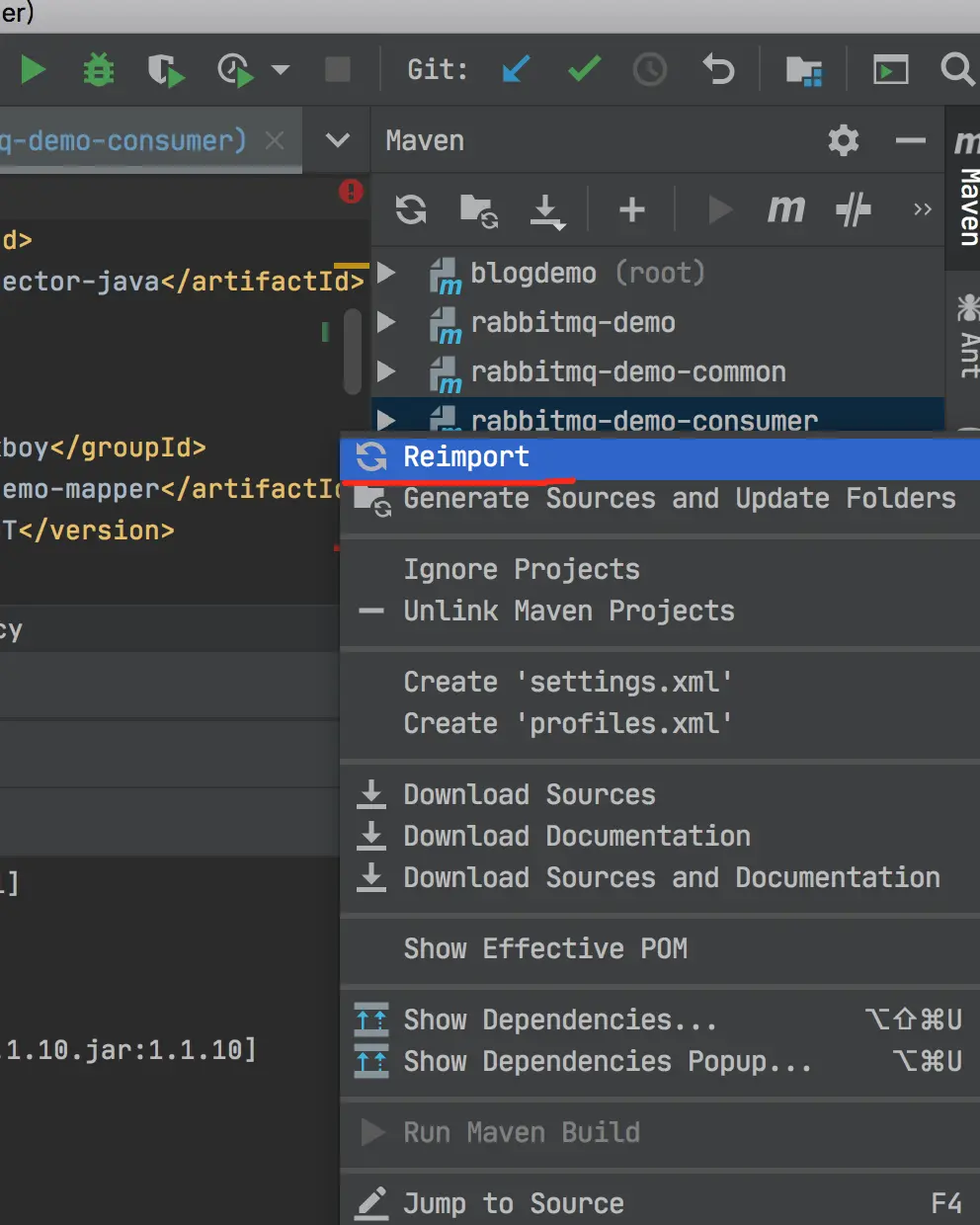 Reimport,则会重新从 pom.xml 里解析并下载依赖。
