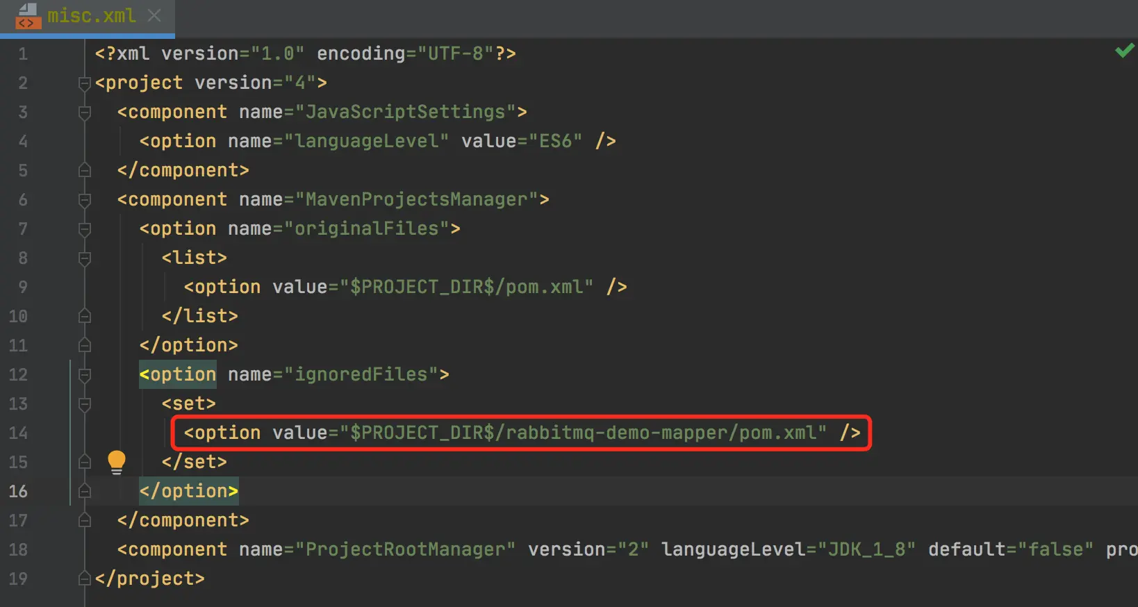 - 打开 项目目录 .idea/misc.xml 文件: