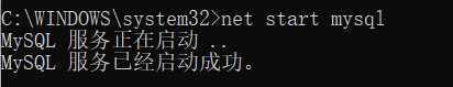 MySQL服务的安装 Penn6 2020-06-03 220 阅读1分钟 mysql服务的安装 1.在path中配置环境变量 配置的路径为你mysql安装目录下的bin文件夹 2.此时应该安装mysql服务 打开命令提示符,输入mysqld -install安装服务, 如图片显示则安装成功 接着启动mysql服务 输入net start mysql