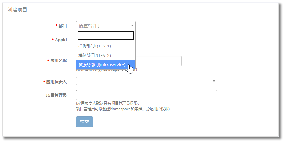 此时再去创建项目时,就可以选择我们刚才添加的部门了。