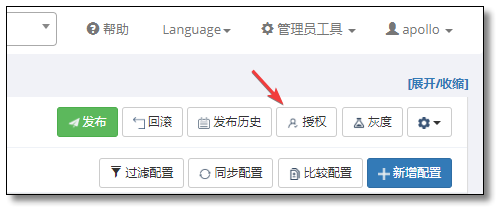 进入项目后点击右上角的授权按钮,进入权限管理页面。