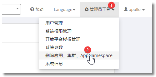 点击管理员工具下的删除应用、集群、AppNamespace菜单进入对应页面。