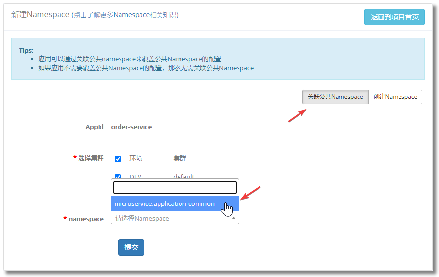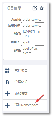 进入项目后点击左下角添加Namespace,选择关联公共Namespace,添加刚才创建的公共Namespace。