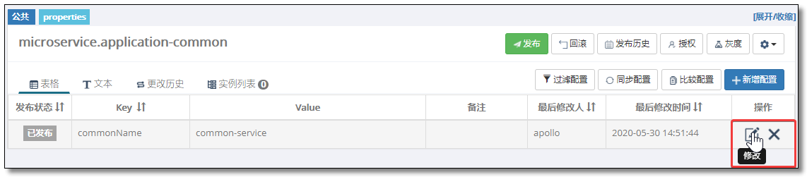 点击同步按钮以后配置将同步成功,同步完之后需要发布后才会对应用生效。