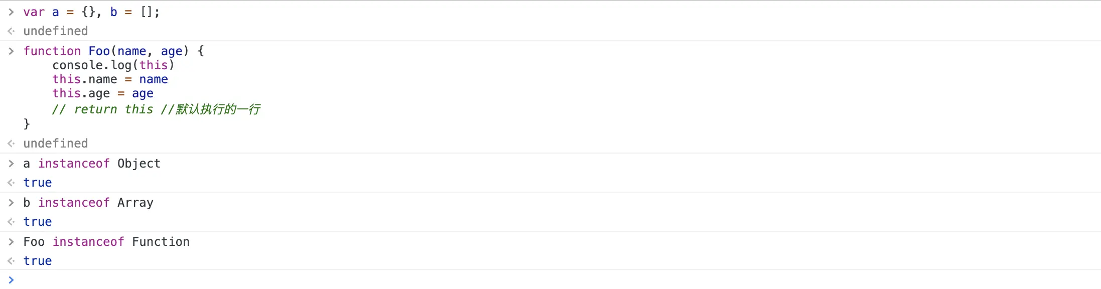 a 的构造函数是Object,b的构造函数是Array, Foo的构造函数是Function。