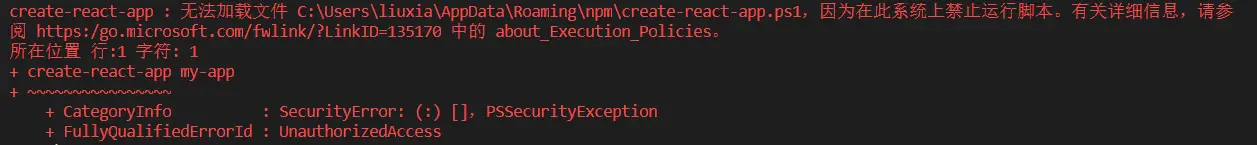 create-react-app :无法加载文件 create-react-app.ps1,因为在此系统上禁止运行脚本 大A小Z 2020-06-03 539 阅读1分钟 创建react项目时报了这个错误,记下来免得以后忘记。 我不想把项目放在C盘,所以我是放在别的盘的。 解决方法如下: 1、搜索框输入:Windos PowerShell 并且以右键管理员身份运行 2、打开了命令行之后,输入set-ExecutionPolicy RemoteSigned,并且把权限改权限为A,然后通过 get-ExecutionPolicy 查看当前的状态: 3、最后我们就可以使用命令创建项目了。
