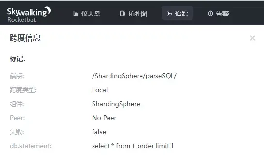 追踪数据展示从跟踪图中可以能够看到SQL解析和执行的情况。