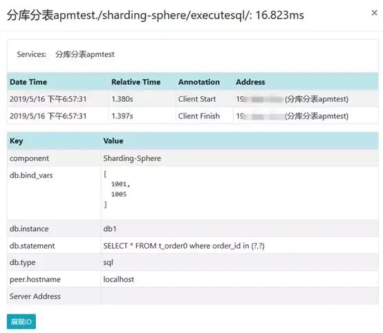 可以看到,今天介绍的两种方式,界面不同,但展示的信息是一样的。需要强调的是,ShardingSphere使用的OpenTracing版本是0.30.0,并不支持0.31.0及以上版本。0.31.0较之前变化较大,基础的类名都有变化,如ActiveSpan变为Scope。所以,如果想使用0.30.0以上版本,用户需要定制开发。