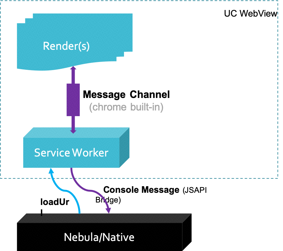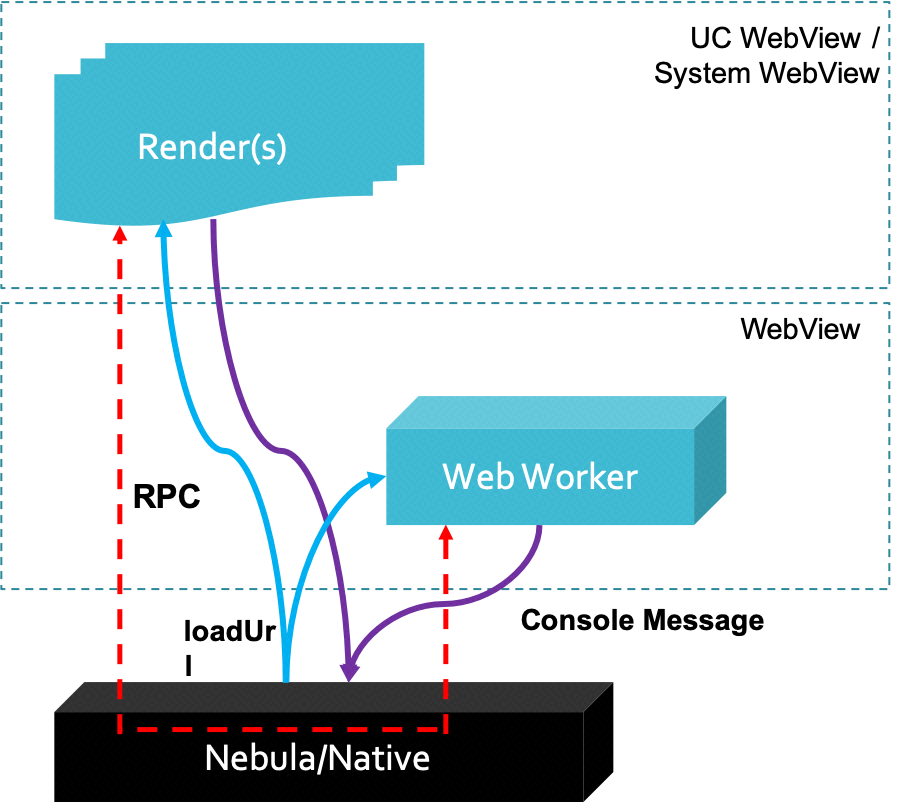 如上图所示,Render 和 Nebula 直接的双向通行是分别通过 Console.log 和 WebView 的 loadUrl[9] 接口进行的。