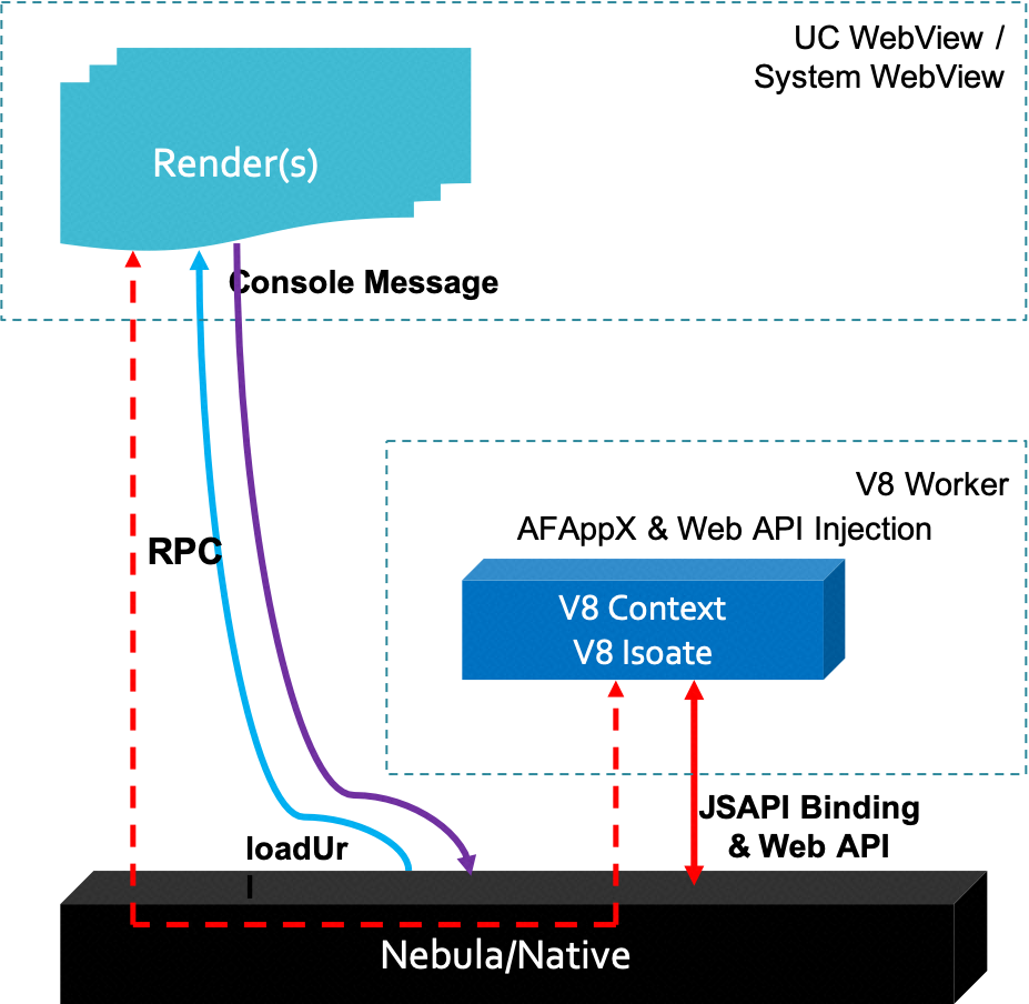 [9]https://developer.android.com/reference/android/webkit/WebView#loadUrl(java.lang.String) [10]https://codesearch.alipay.com/source/xref/Android_wallet_master/android-phone-nebula-git/nebula/js/h5_bridge.js?r=78c30345 [11]https://developer.mozilla.org/en-US/docs/Web/API/Console/log [12]https://codesearch.alipay.com/source/xref/Android_wallet_master/android-ariver/js/workerjs_v8_origin.js?r=b59d7f92 [13]https://codesearch.alipay.com/source/xref/Android_wallet_master/android-ariver/js/workerjs_v8_origin.js?r=b59d7f92 [14]https://github.com/eclipsesource/J2V8 [15]https://opendocs.alipay.com/mini/plugin/plugin-introduction [16]https://v8.dev/docs/embed#security-model