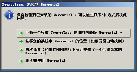 这步操作我们一般选择不使用Mercurial,因为我们会安装git。