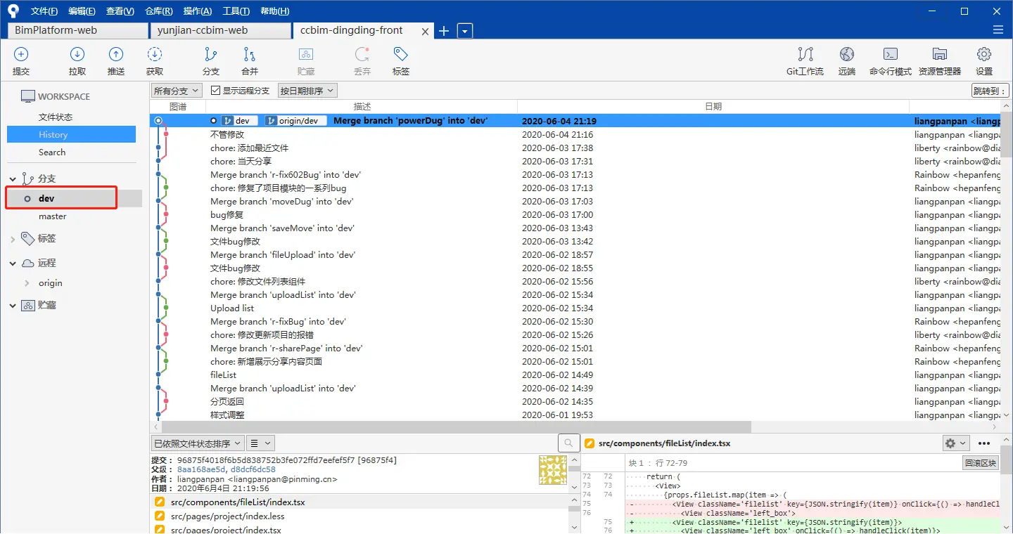 2.已发布的分支出现bug要临时修复时,最后也新建一个fixBug分支。
