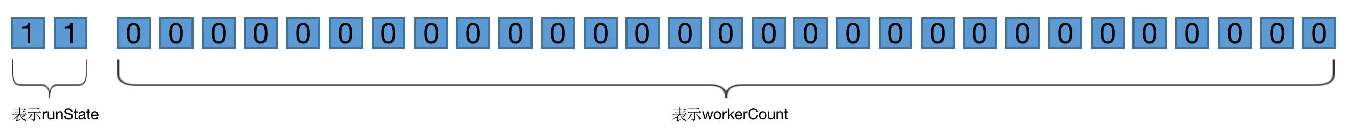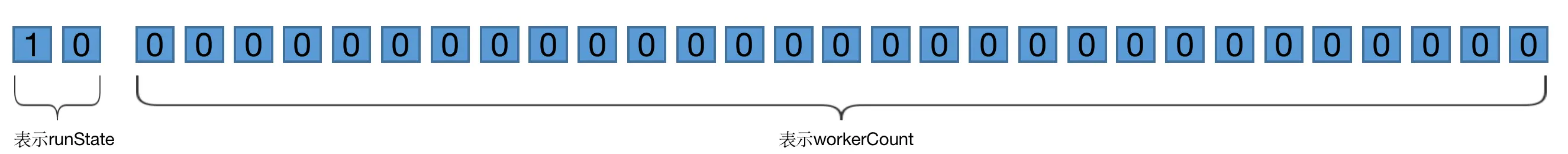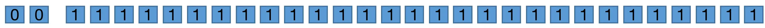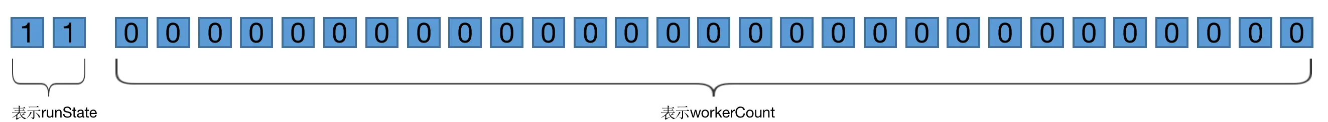 据此可知,COUNT_BITS为29; 也就是说RUNNING的值为-1左移29位, 我们知道-1的原码是1000……1, 所以反码是1111……110, 补码就是1111……111, 关于反码补码不清楚的可以看这里传送门 所以RUNNING二进制如下图所示: