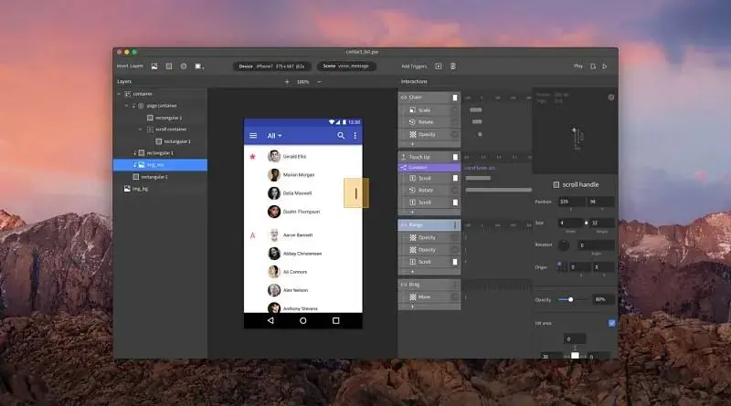 ProtoPie是一款简洁易用的交互工具,能够实现很多动画效果,还具备复杂的条件和参数设置,支持多点触摸手势和手机传感器,可以导入到手机演示,支持 Windows 和 Mac 双平台,如果想要设计高保真原型,ProtoPie非常适用。