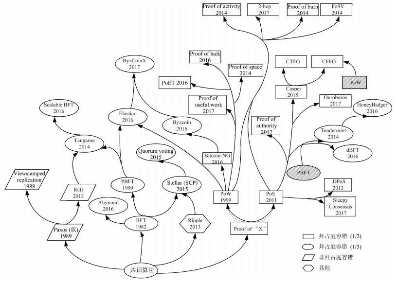 选自袁勇, 倪晓春, 曾帅, 王飞跃,《区块链共识算法的发展现状与展望》,自动化学报, 2018, 44(11): 2011-2022