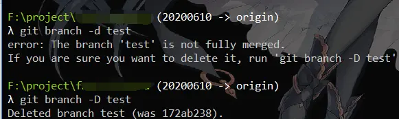 如果需要强制删除该分支的话,就需要在命令中使用-D选项