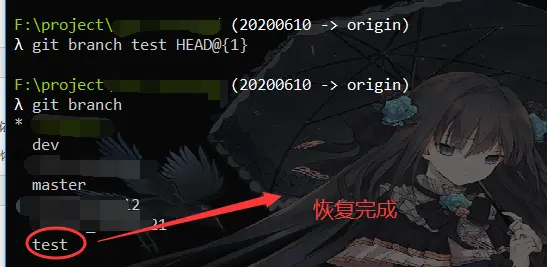 因此,如果我们知道删除分支时的散列值,就可以将某个删除的分支恢复过来。在已知提交的散列值的情况下恢复某个分支: