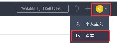 - 登录码云,点击"用户头像"中的"设置"
