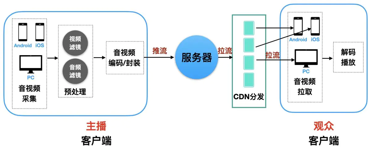 通过下面这个数据流程图,能清晰地看到整个直播的过程。
