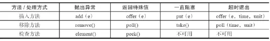 IllegalStateException("Queuefull")异常。当队列为空时,从队列获取元素会抛出NoSuchElementException异常。 - 返回特殊值:当往队列插入元素时,会返回元素是否插入成功,成功返回