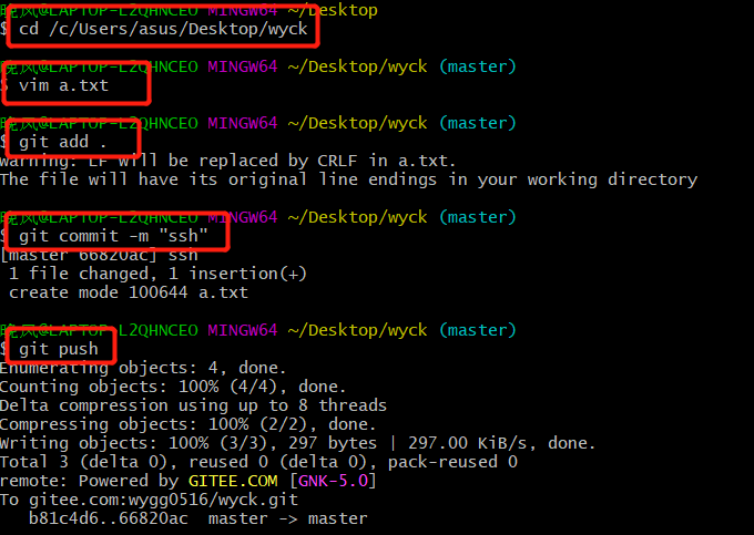 - 这样就配置好了,接下来我们试试用ssh来提交文件