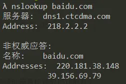 可能有的人用 ping 或 nslookup 获取到的百度IP地址和文中的不一样,是因为百度一个域名对应了多个地方的服务器的IP地址。很多公司会在不同的地方部署多个服务器,防止只有一台服务器,当访问人数过多的时候服务扛不住而狗带。比如一个公司在华中、华北、华南、华东各部署一台服务器,把四个服务器的IP地址都和同一个域名对应,那么你访问这个域名时,会让离你最近的服务器来接待你,这叫负载均衡,是一个常见的服务器优化策略。
