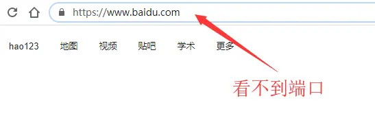 在实际使用中,我们往往是看不到端口的,因为很多服务的端口都是默认设定好的,我们不用刻意去看。比如我们访问百度时,实际使用的端口在地址栏上往往是看不到的:
