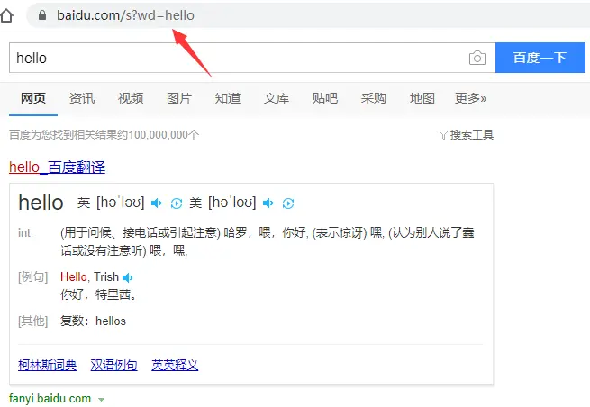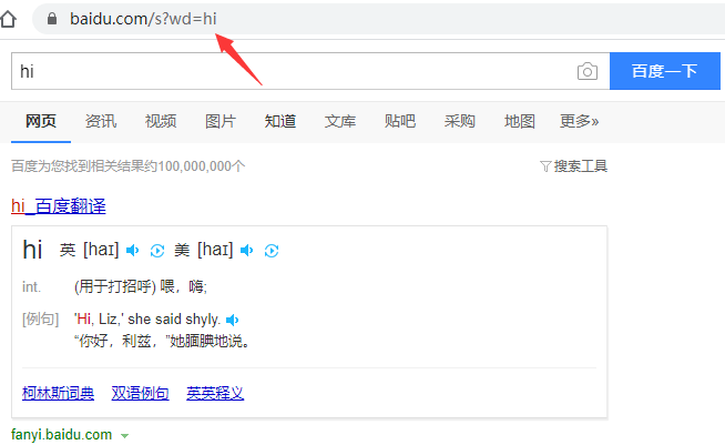同样是百度这个网站,我们输入不同的搜索词时,就会出现不同的页面内容,这是怎么实现的呢?其实是通过不同的查询参数来实现的: