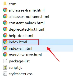 接着进入dos命令行,切换到该注解所在的文件夹,然后执行javadoc -d doc *.java,该命令的作用是使用javadoc工具生成一个对该目录下所有java文件的说明文档。运行命令后可以发现当前目录下多了一个doc目录,进入该目录,然后使用浏览器打开其中的index.html文件:
