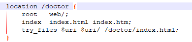 vue router history 模式的配置 guosen 2020-06-03 671 阅读1分钟 一级目录即可 router.js 不用设置 base, publicPath配置成 './' nginx配置 3. 目录结构 二级目录及更多 router.js 的base 设置 base: '/doctor/' publicPath配置成 publicPath: '/doctor/' nginx配置 4. 目录结构