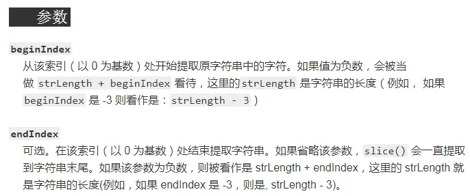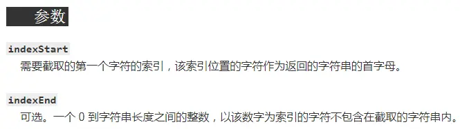 console.log(str) //abcd 作用:从原str中返回beagin索引到end(不包含)索引(默认到尾部)的新字符串。该方法不改变原字符串。