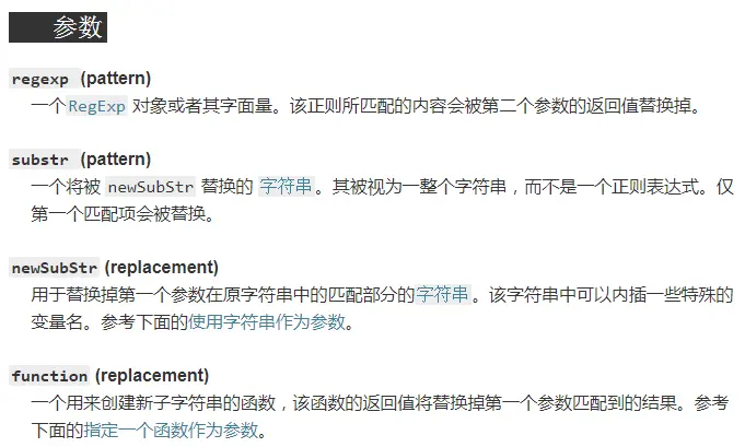 console.log(str) //abcd 作用:replace() 方法返回一个由替换值(replacement)替换一些或所有匹配的pattern后的新字符串。pattern可以是一个字符串或者一个正则表达式,替换值可以是一个字符串或者一个每次匹配都要调用的回调函数。 该方法不改变原字符串。