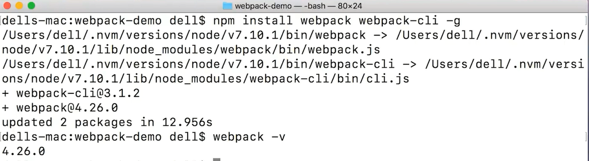 2.项目中安装webpack :npm install webpack webpack-cli -D