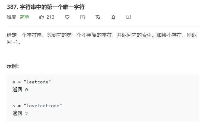 - 根据字符串长度分解成两种情况进行处理,当字符串长度小于等于26时,只需要遍历a-z字母集合,找到出现次数为1的字符即可